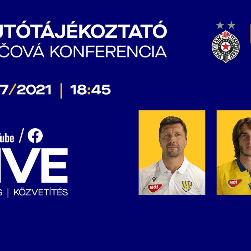 YouTube link: Tlačová konferencia DAC 1904 pred stretnutím 2. predkola Európskej konferenčnej ligy proti Partizanu Belehrad. Naše mužstvo budú zastupovať tréner Antal Németh a za hráčsku kabínu Andrija Balić. Udalosť sa začína v stredu 21. júla 2021 o 18.45 hodine. Sledovať ju môžete v živom TV-prenose na našom YouTube profile, prípadne zo záznamu, ktorý bude k dispozícii na rovnakom mieste krátko po ukončení prenosu. Link prenosu na Facebooku nájdete priamo na našom profile tesne pred výkopom.