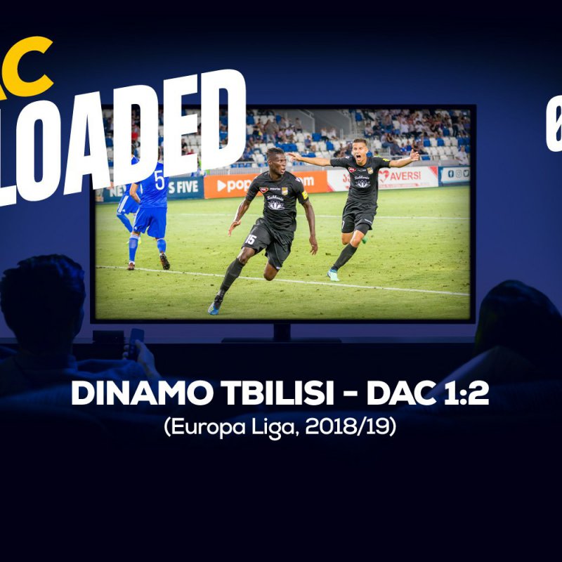 V piaty večer v rámci nášho seriálu pamätných zápasov z histórie DAC-u sa prvýkrát pozrieme za hranice. K poslednému zápasu Marca Rossiho na lavičke mužstva sa viaže senzačný obrat po dvoch hlavičkách kráľa vzduchu Baya. Po domácej remíze 1:1 stál DAC počas 85 minút odvety v gruzínskom hlavnom meste na vypadnutie, ale Bayo najskôr v 86. minúte vyrovnal a už v nadstavenom čase rozhodol o našom postupe do 2. predkola Európskej ligy.
