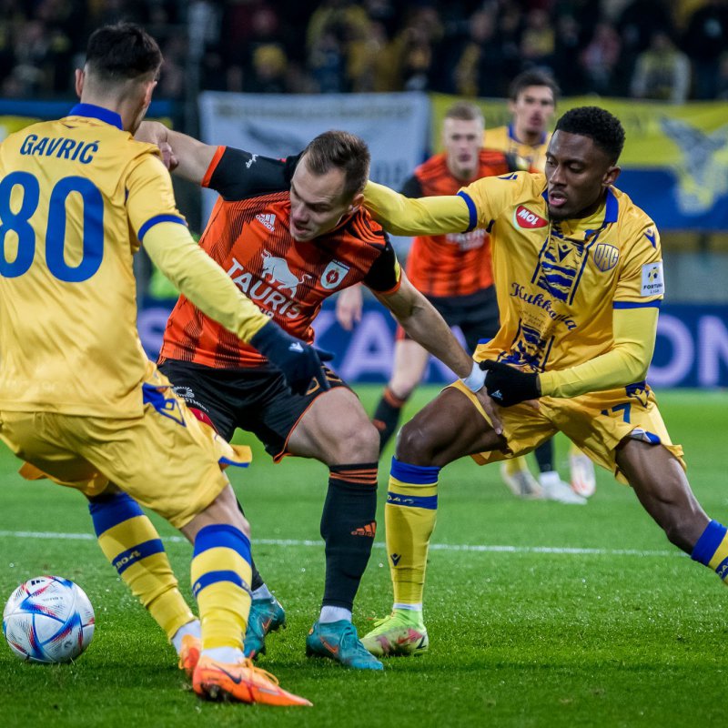 Mi vagyunk a sárga-kékek, hej, hej!  szólt a nóta, miközben Morong került kis híján gólhelyzetbe. Védőink azonban rutinosan megoldották a feladatot, és a labda nem veszélyeztette a kapunkat. A 14. percben Petrának viszont már akadt védenivalója: Bobček tűzte rá. A vendégek akciója után mi lendültünk támadásba, de Gavrić csak oldalhálóig jutott. A 23. percben viszont remekül vette ki a részét a támadásból. Andzouanához továbbított a bal oldalra, akinek centerbe lőtt labdáját Nebyla küldte kapásból a bal oldali kapufa tövébe  1:0