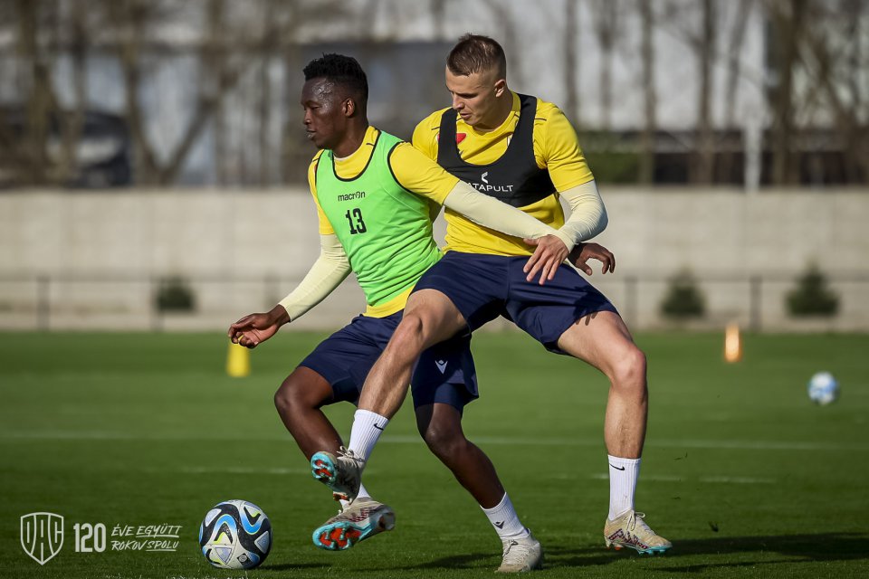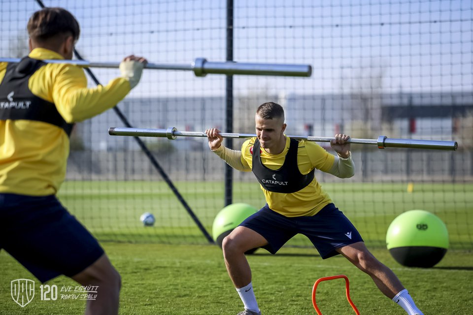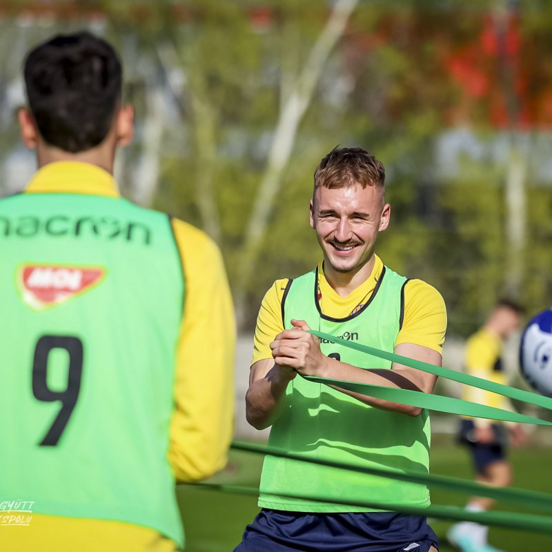 A válogatott szünetben sincs megállás – csapatunk a csillagászati tavasz beálltával visszatért saját, felújított pályáira az akadémián. Ilyen volt a sárga-kékek szerda délutáni edzése. Lelkes Ernő felvételei.