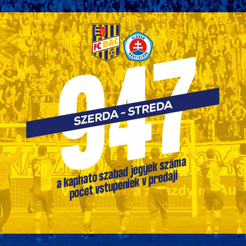 Dnes o 10.30 h bol aktuálny zostatok lístkov na derby DAC-Slovan 947. Naplňme štadión!