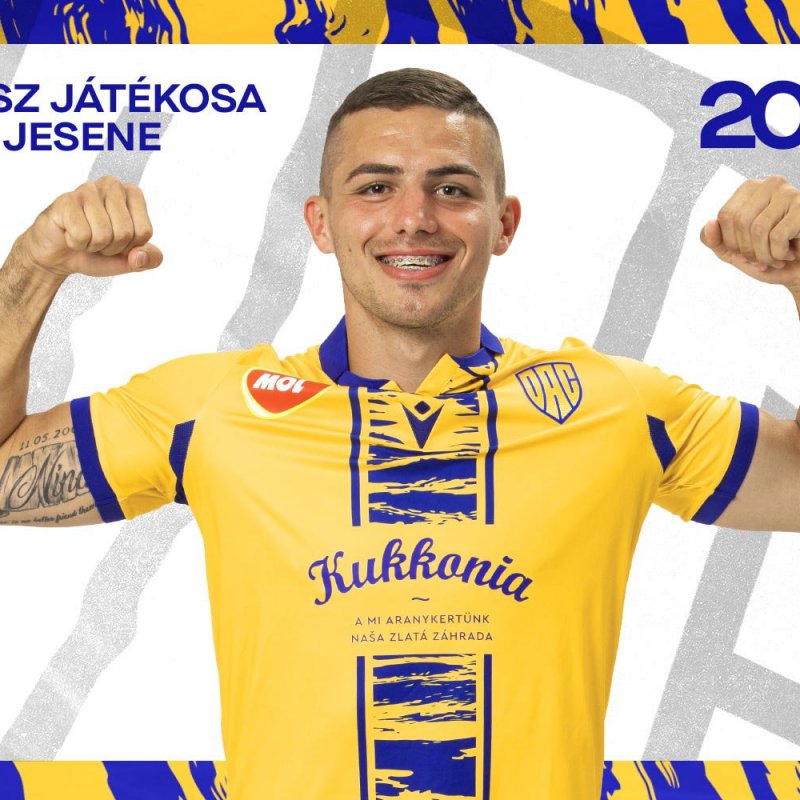 Obhajoba: čiernohorský útočník ovládol hlasovanie fanúšikov o najlepšieho hráča DAC-u v jeseni 2022! Druhé miesto patrí Zsoltovi Kalmárovi, tretí skončil Spyros Risvanis.