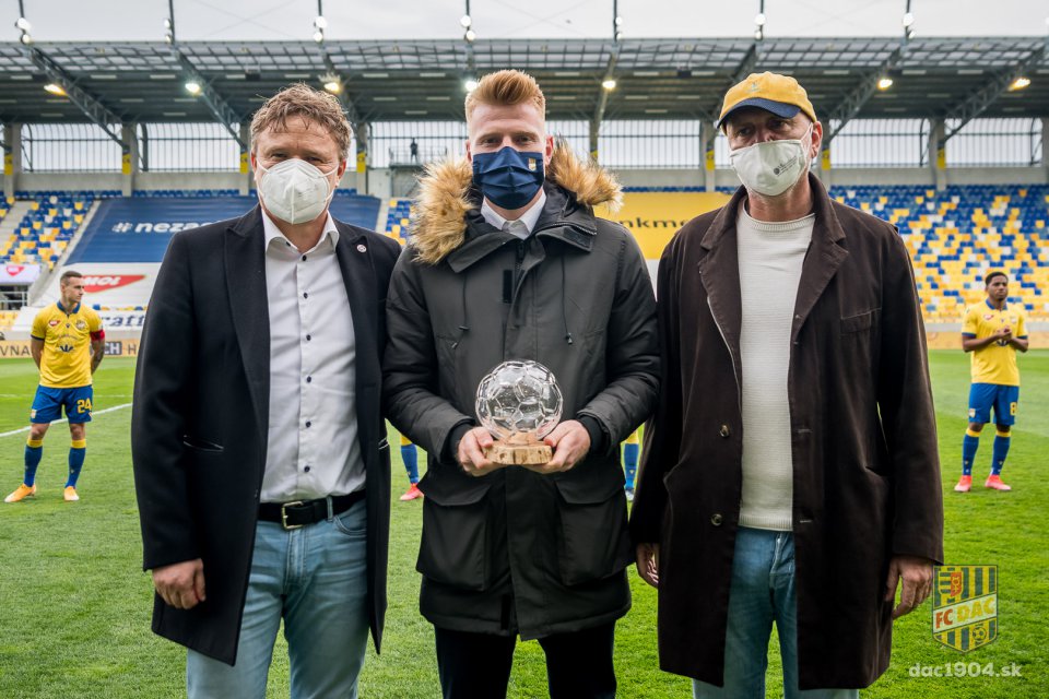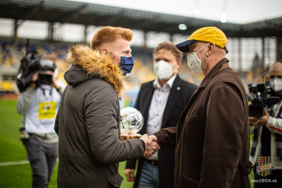 Pred výkopom si Zsolt Kalmár prevzal trofej za najlepšieho hráča Fortuna ligy za rok 2020. Gratulujeme!