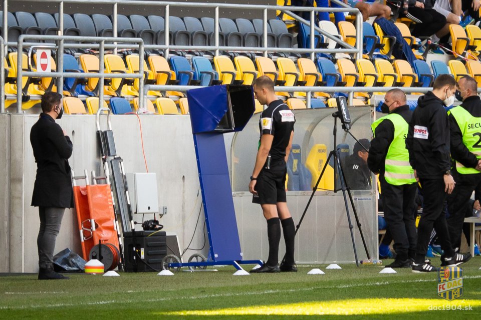 Taiwo padol v šestnástke po zákroku od Bajrića a VAR prechádza do akcie, rozhodca dokonca prišiel k televíznej obrazovke.