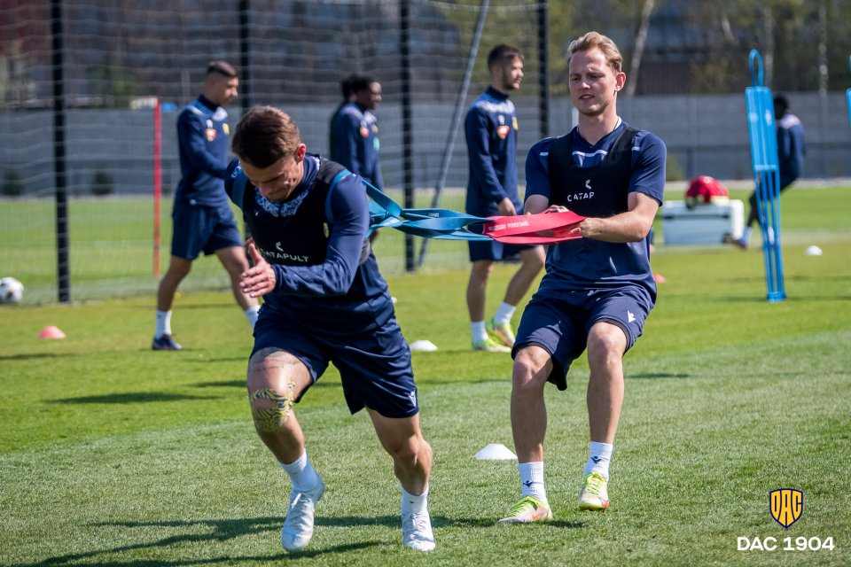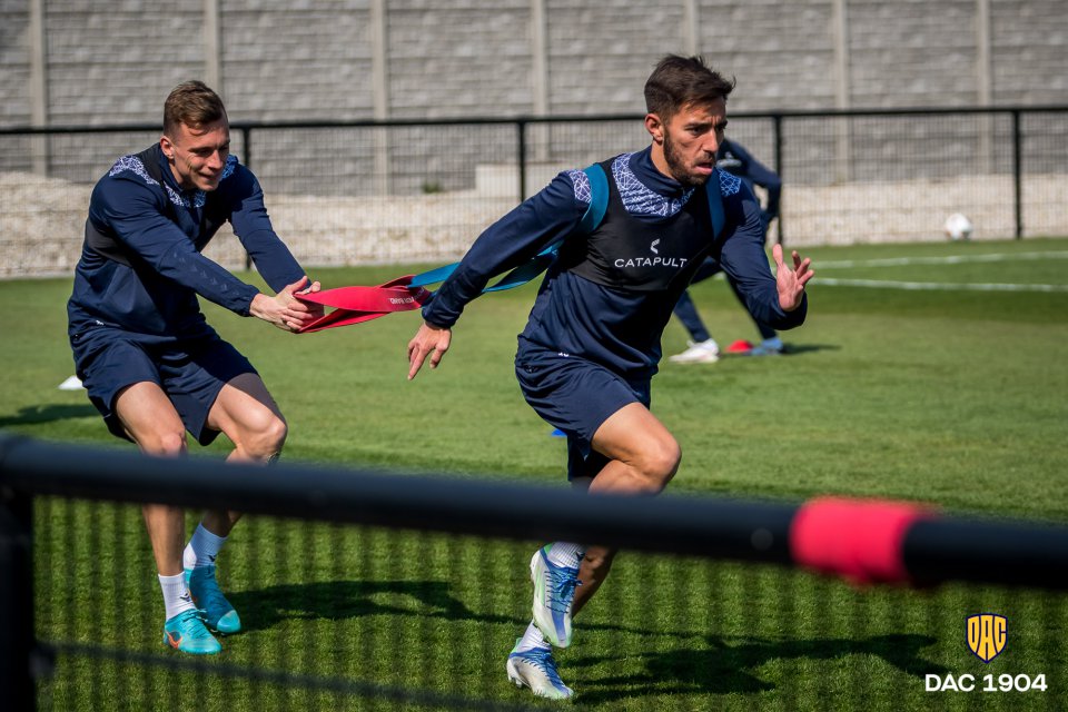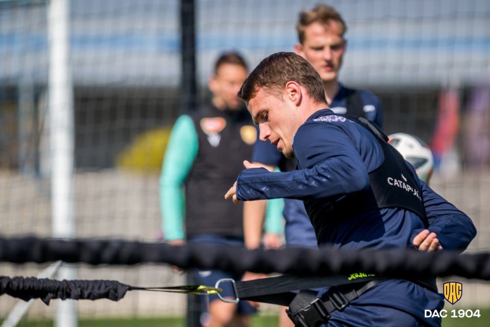 Csapatunk vasárnap este a pozsonyi Slovant fogadja a MOL Arénában. Minden gondolat és mozdulat már a rangadóra összpontosul, ami a ma délelőtti edzésre is igaz volt. Lelkes Ernő felvételei.