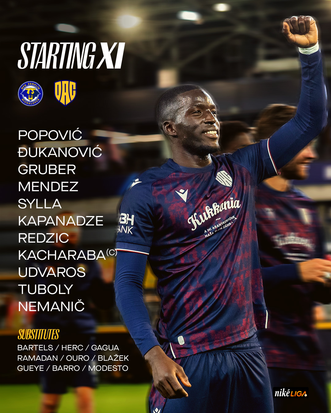 Popović – Kapanadze, Kacharaba, Nemanič, Mendez – Gruber, Tuboly, Udvaros – Redzic, Djukanović, Sylla