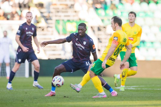 Kukovec felé érkezik egy jó átadás, centiken múlik, hogy nem éri el. A zsolnai kapus megelőzi őt a döntő pillanatban. Más kérdés, hogy a szlovén támadónk lesen állt, így valószínűleg elvették volna a gólt, ha belövi.