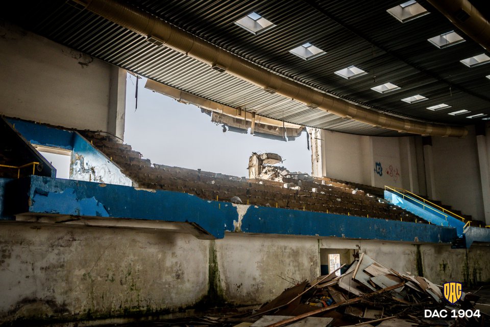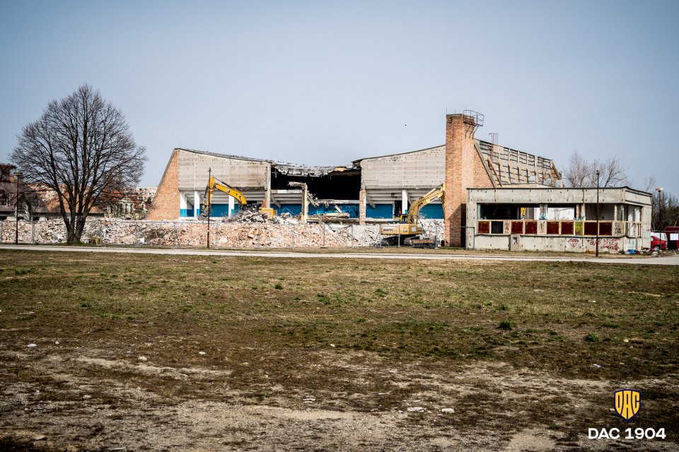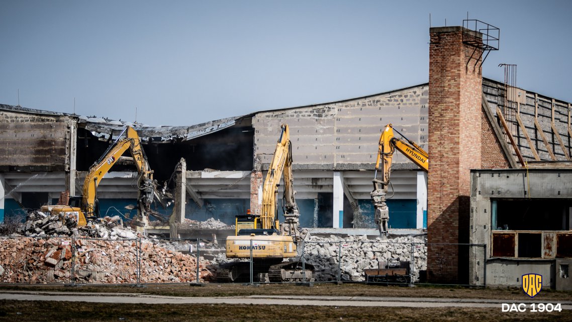 Starú športovú halu, ktorá sa nachádza v susedstve MOL Arény, otvorili pred 35 rokmi. Vo svojich najlepších rokov bola dejiskom množstva veľkých športových podujatí, vrátane mnohých futbalových turnajov. Zábery z búracích prác. Autor: Lelkes Ernő.
