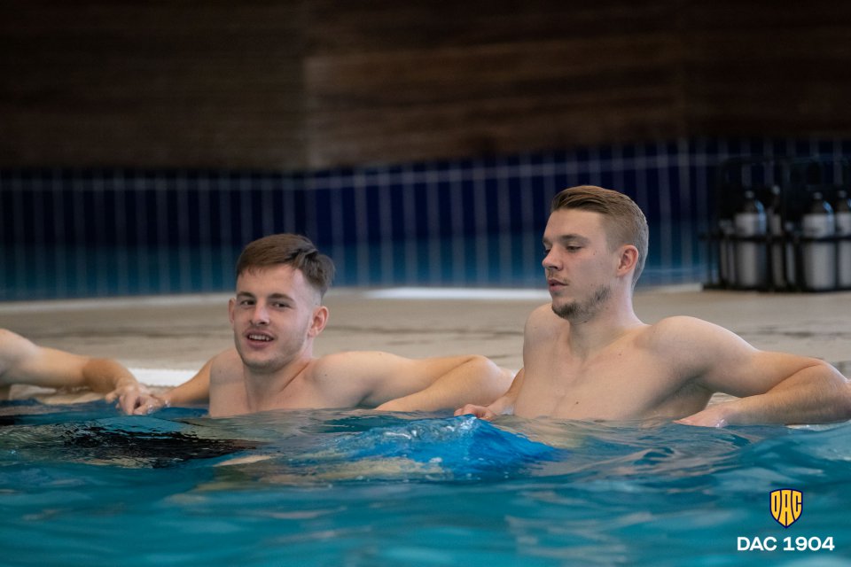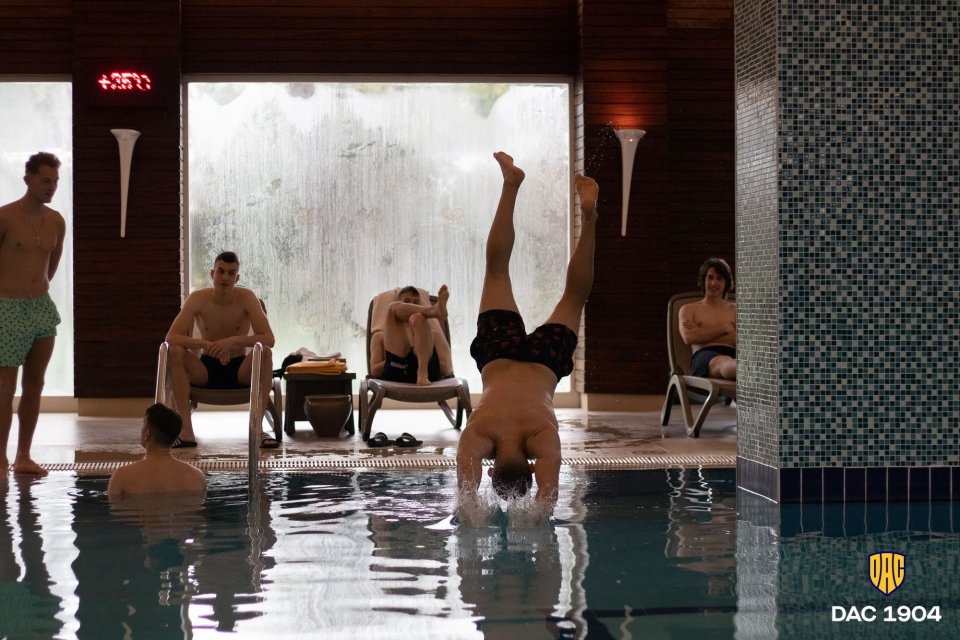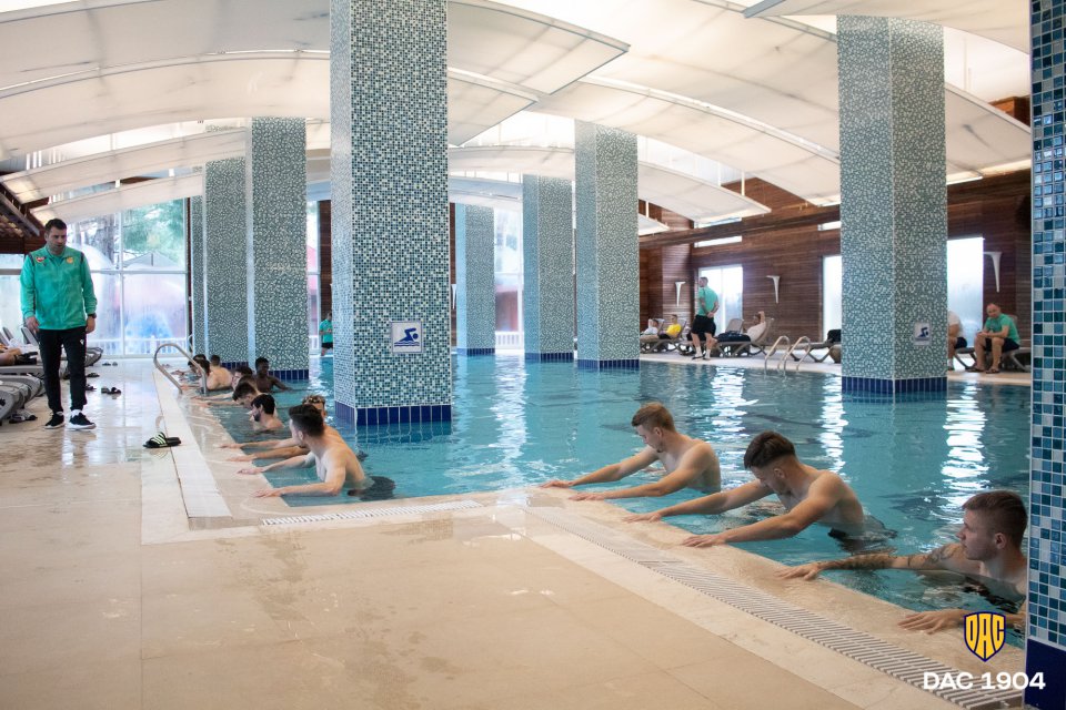Prvá tréningová jednotka utorňajšieho dňa prebiehala v hotelovom bazéne a vo výbornej nálade. Ďalšie foto zo sústredenia v Beleku.