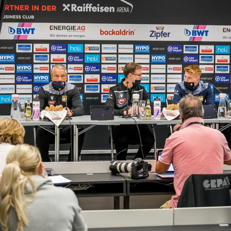 Tlačová konferencia DAC 1904 pred zajtrajším stretnutím 3. predkola Európskej ligy proti LASK Linz. Naše mužstvo zastupovali tréner Bernd Storck a kapitán Zsolt Kalmár.