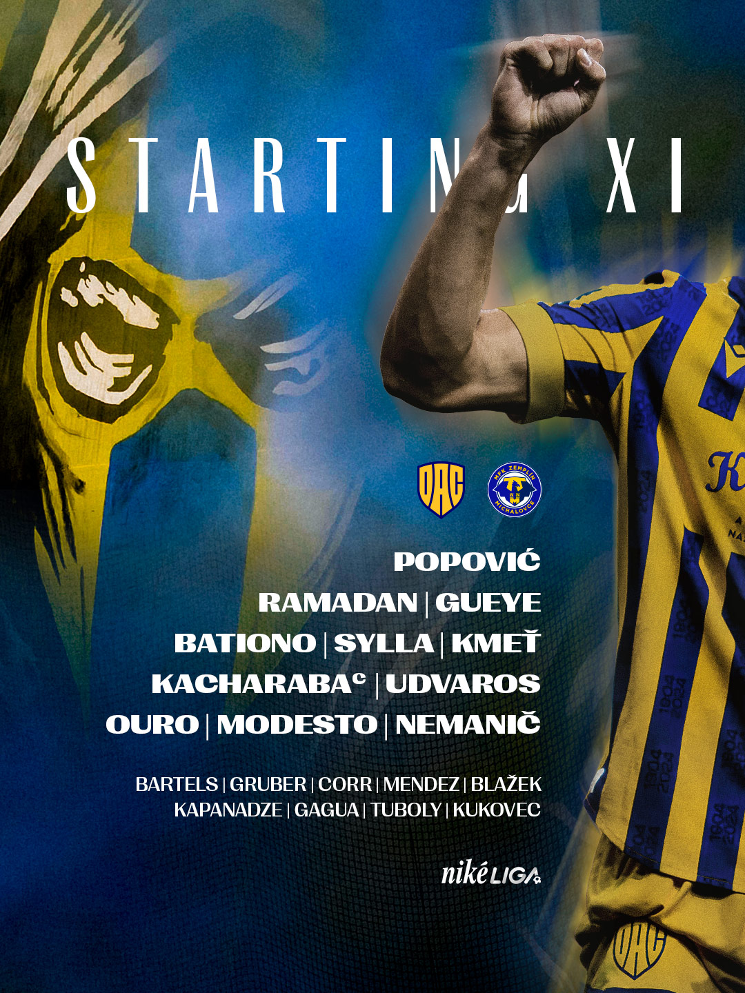 Popović - Nemanič, Bationo, Kacharaba - Kmeť, Udvaros, Ouro, Modesto - Sylla, Ramadan, Gueye