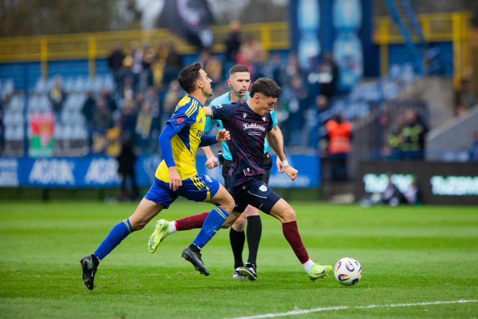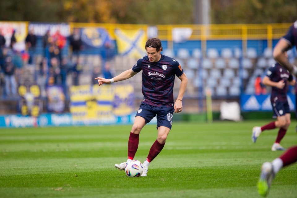 Príjemný dobrý deň vám prajem zo štadióna nášho najvzdialenejšieho súpera, kde práve v týchto chvíľach prichádzajú hráči oboch celkov na hraciu plochu. Domáci v žlto-modrej kombinácii a naši hráči v hosťovskom modro-bordovom prevedení.
